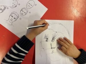 Bij Noordje hebben we eerst geoefend om een goed gezicht te kunnen tekenen. Ook hebben we geprobeerd om er emoties in te leggen.