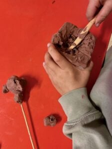 Nu gingen we kneden en kneden met de plastine, zodat die lekker zacht werd en we er een gezicht van konden kleien met een emotie.